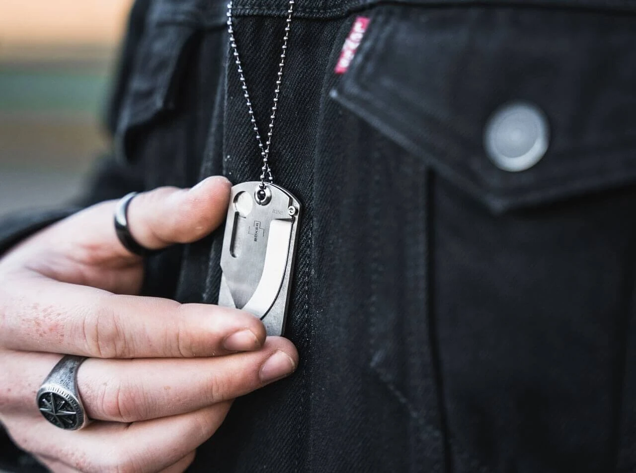 John Kubasek konnte mit seinen einfallsreichen Entwürfen bereits unzählige Messerfreunde überzeugen und ist für seine innovativen Taschenmesser inzwischen auf der ganzen Welt bekannt. Nun hat der erfahrene Messermacher aus den USA ein noch kompakteres Backup-Taschenmesser umgesetzt und uns das 24 Gramm leichte Dog Tag Knife vorgestellt, das bei einer Stärke von nur ungefähr vier Millimetern wie sein Namensgeber bequem an einer Kugelkette um den Hals getragen werden kann.