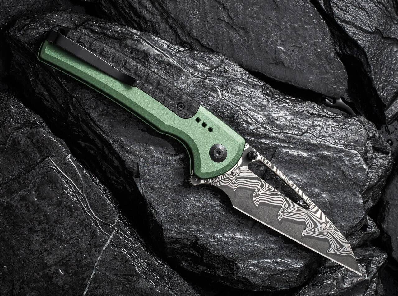 Sentinel Strike Aluminum Green & Black Damascus